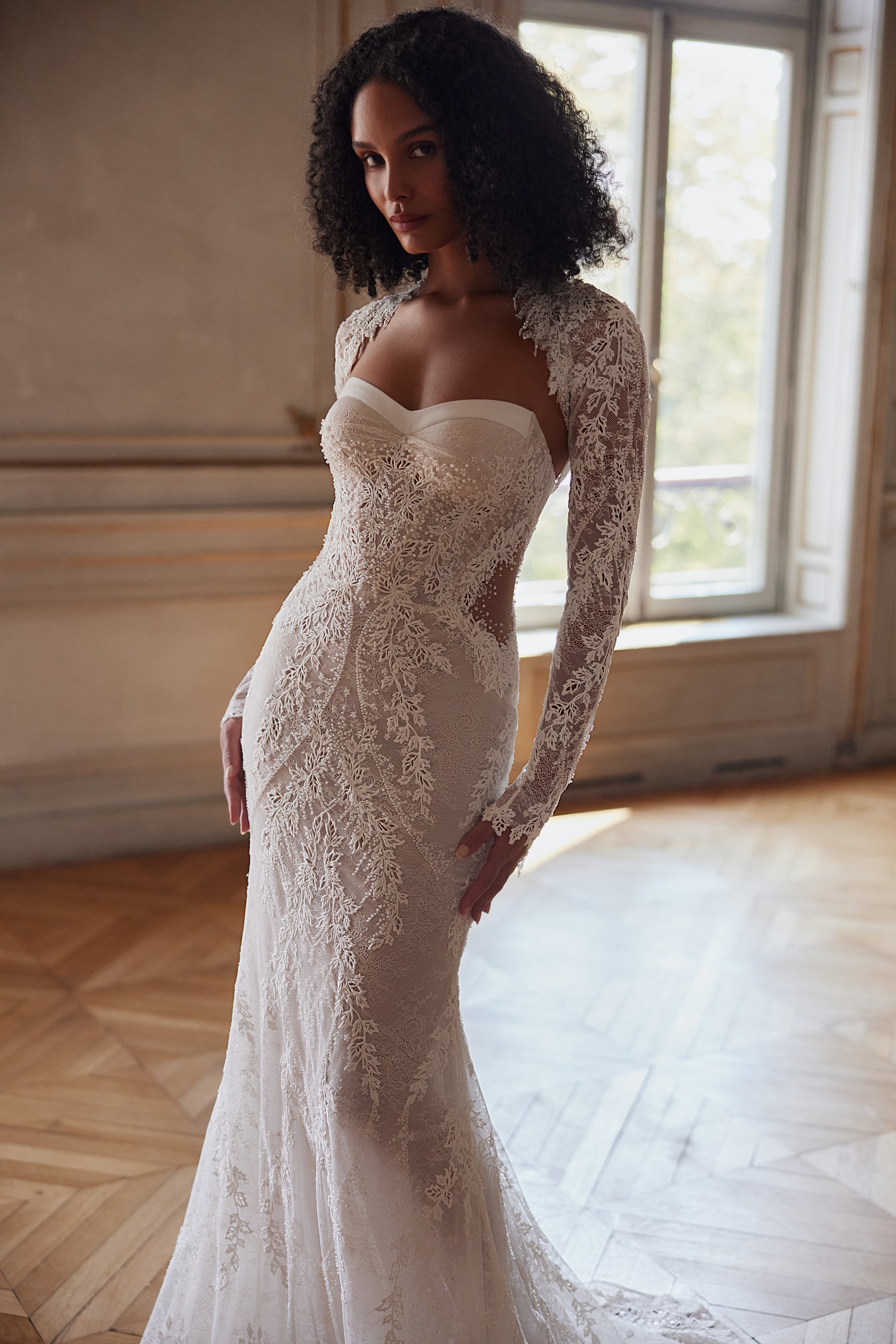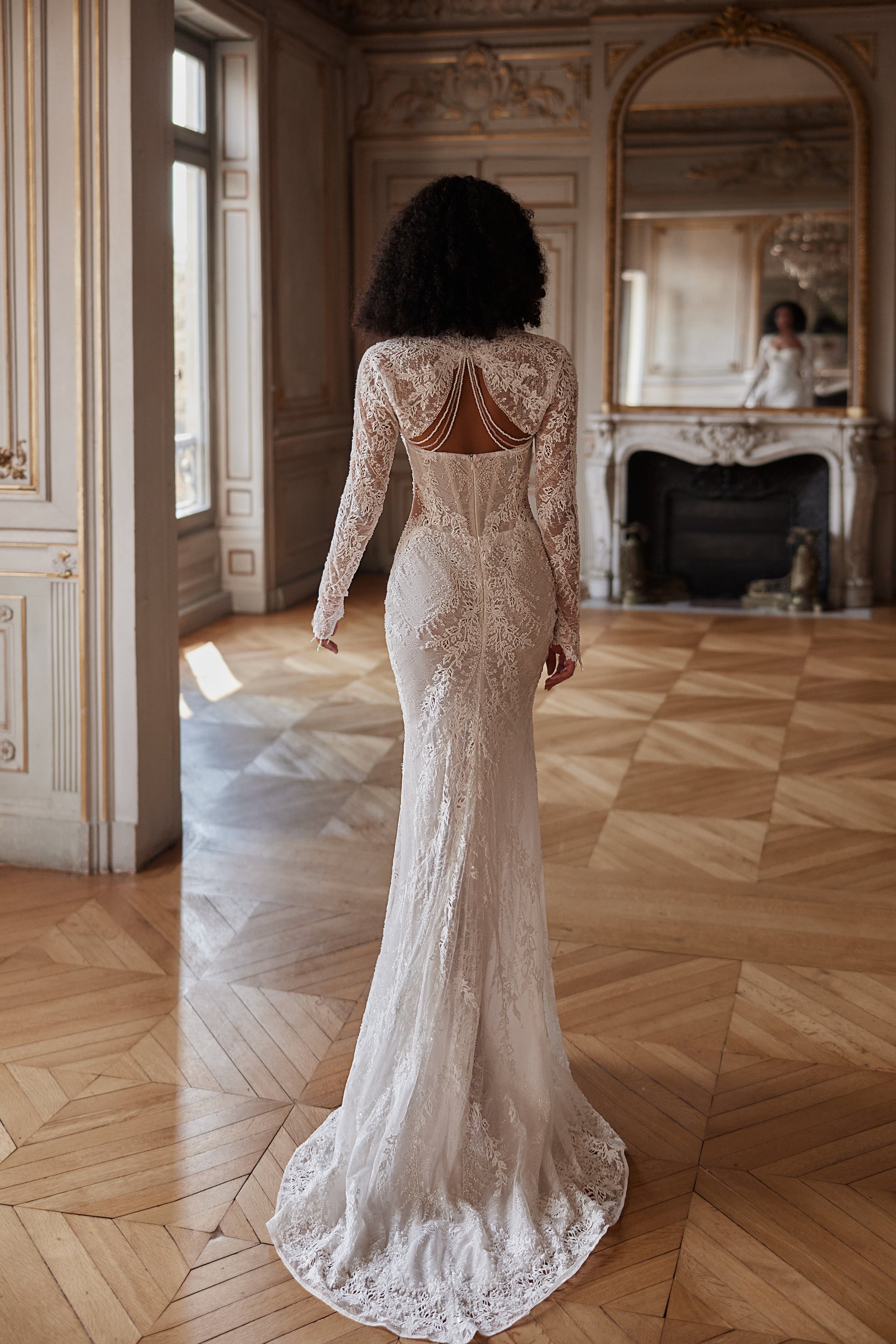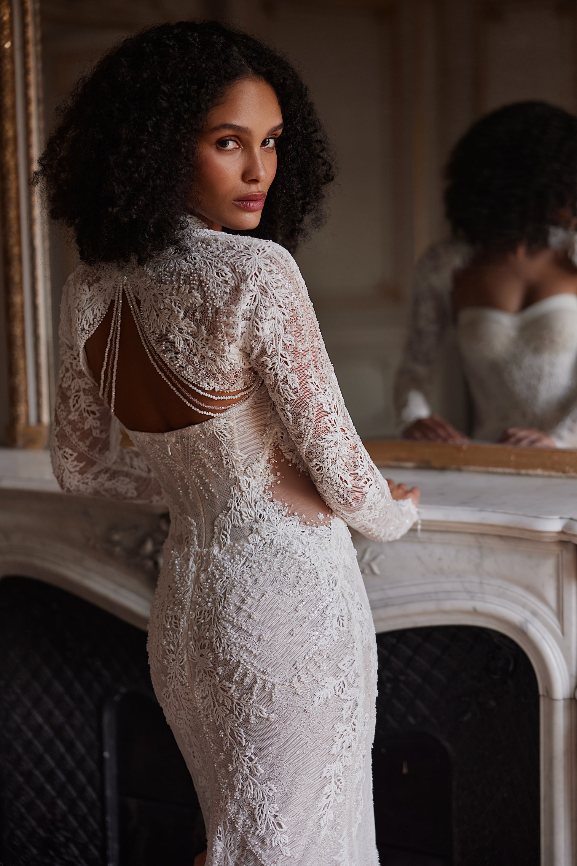 Una poesia di pizzo e ricercatezza questa sirena di puro chantilly francese e filo di perle! Per una sposa che stupisce in bellezza e sensualità !