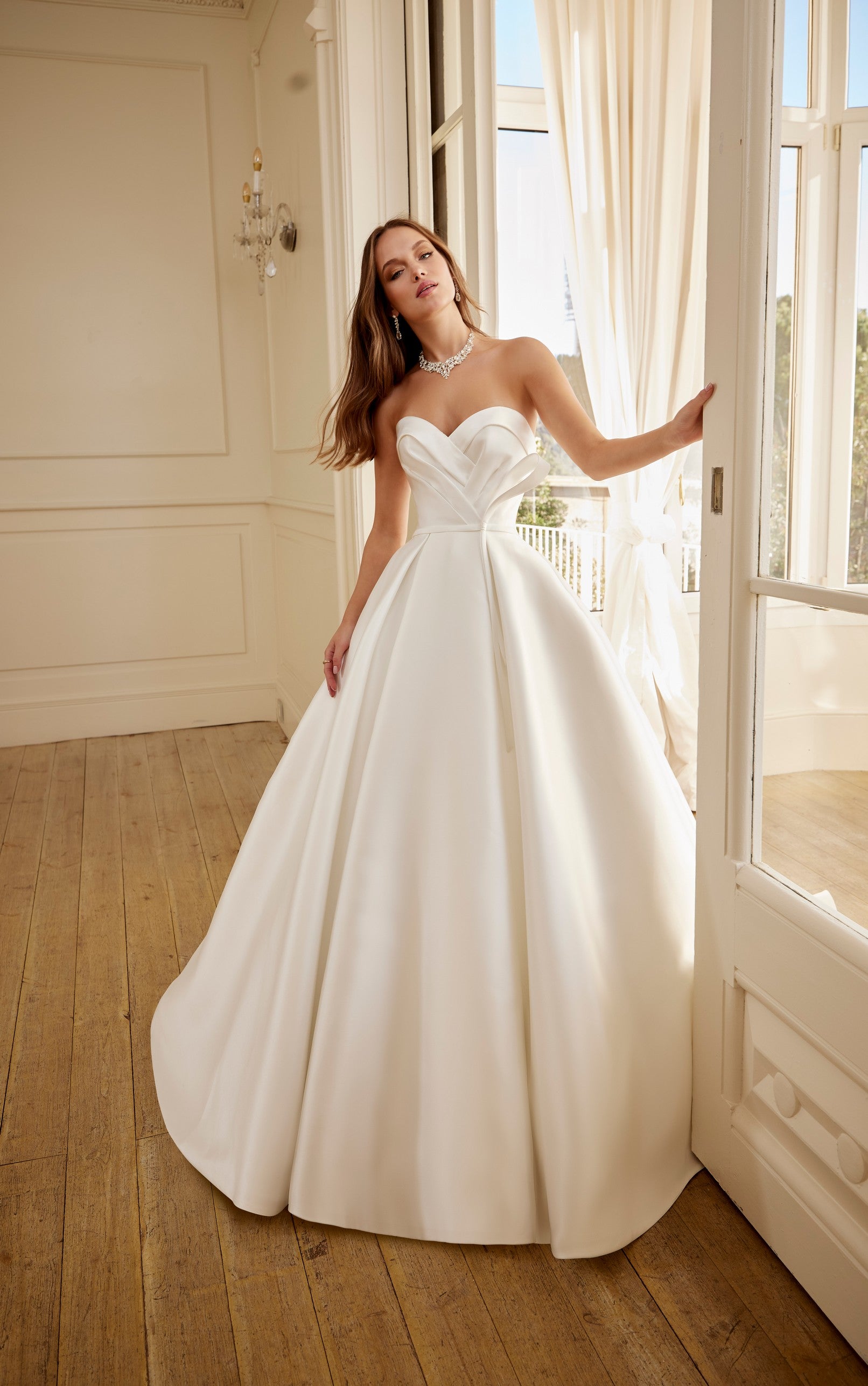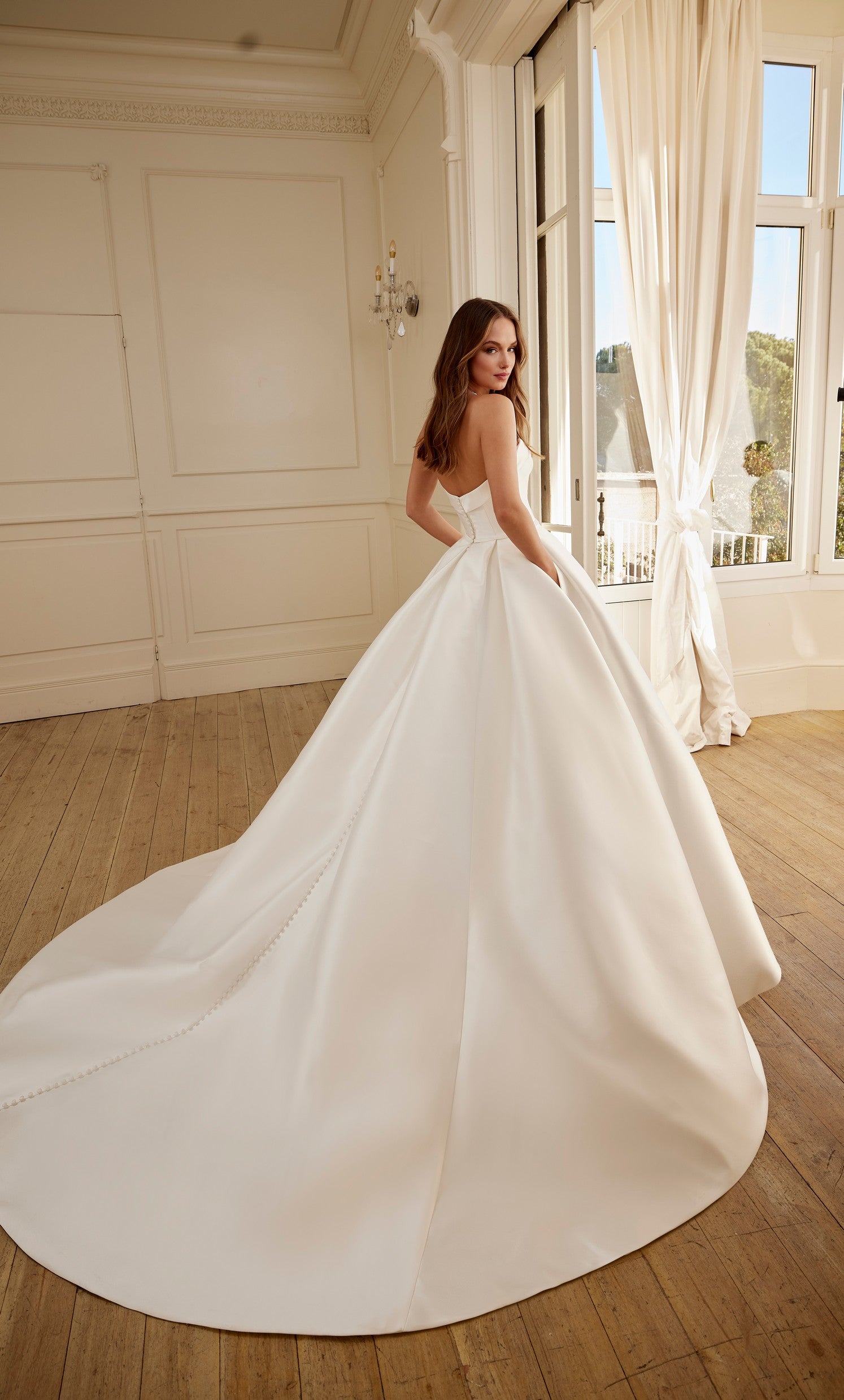 Un abito da sposa in morbido mikado dalla vestibilità disinvolta,