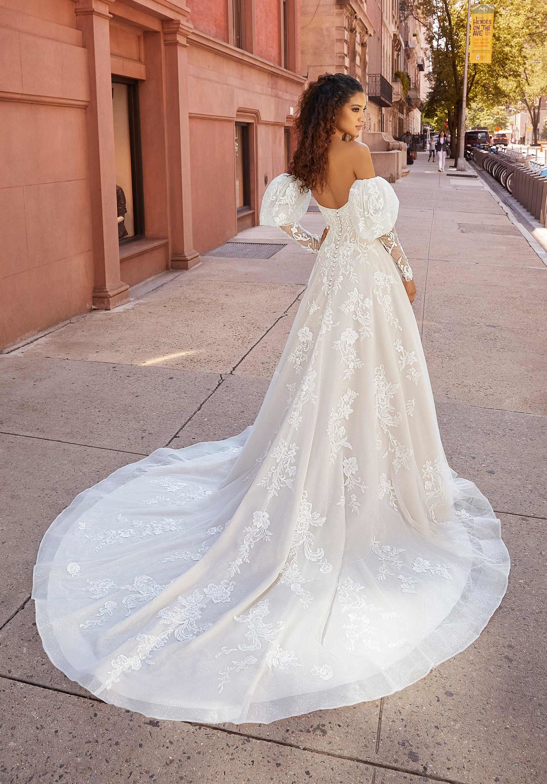 Lo splendido abito presenta una classica scollatura a cuore
